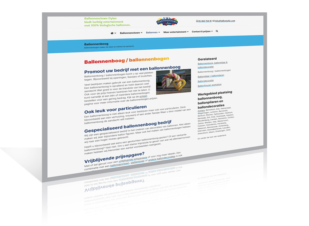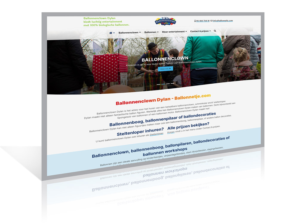 Ballonnenclown Dylan biedt een breed scala entertainment diensten aan op het gebied van ballonnen, schmink en steltenloper acts. Ballonnenclown Dylan wilde zijn website professionaliseren. Digiplek heeft deze taak op zich genomen. Er is een mooi kleurenpalet samengesteld en daarmee een fleurige website passend bij een ballonnenclown en overig entertainment ontworpen en gebouwd. Alle teksten en foto's uit de oude website zijn doorgenomen, verbeterd, uitgebreid en van een goede structuur voorzien. Zowel technisch als visueel zodat de bezoeker eenvoudig zijn weg kan vinden naar de juiste informatie. De website is voorzien van 3 verschillende formulieren waarmee bezoekers informatie kunnen aanvragen/doorgeven. Informatie komt geanimeerd tevoorschijn zodat het een hele soepele indruk geeft bij het laden van de website. De website is gebouwd volgens de nieuwste technieken en aangevuld met passende animaties als je door de website heen navigeert.
